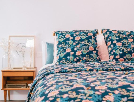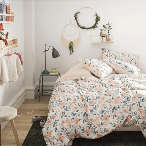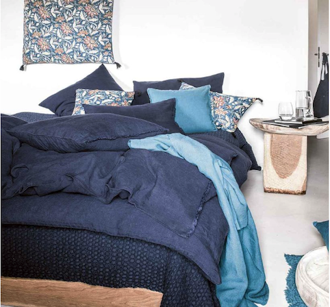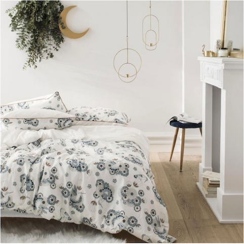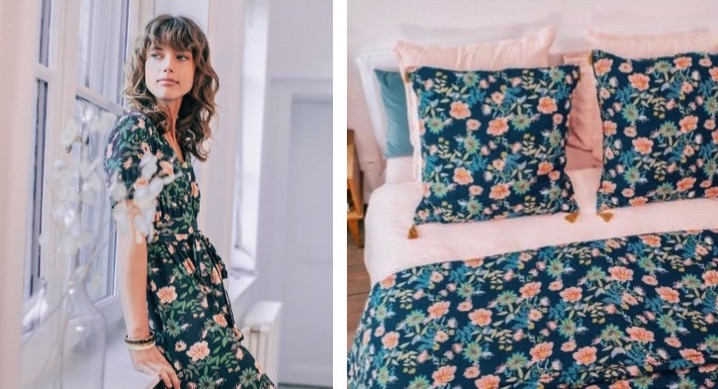 Avec quelques accessoires mixés à nos unis blancs ou colorés, ça fonctionne aussi pour créer la même ambiance printanière. Un boutis et/ou quelques coussins ou taies d’oreillers dans un joli imprimé à fleurs et nous y voilà ! On y voit que du feu, pardon, que des fleurs comme si c’était une couette. Et bien pas du tout, c’est juste un joli édredon et des housses de coussins. J’ai fait la même chose à la maison – je vous montre ça bientôt ! On adore que nos marques chouchou comme Balzac – ci-dessous ou bien Marie Sixtine décline pour la maison leur joli imprimé fleuri dont on raffole.