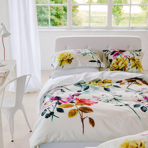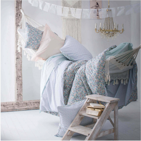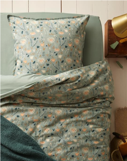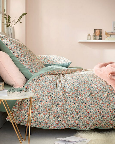 On adore nos petites robes fleuries légères et vaporeuses qui  nous transportent à la campagne d’un simple regard et transforment nos journées en une belle balade bucolique. C’est l’effet Power Flower. C’est comme prendre un grand bol d’air. Cela fait du bien au corps et à la tête. Et si on faisait pareil avec nos draps et housses de couette ? Si on rapportait ces jolis tissus fleuris jusque dans nos chambres pour passer la nuit dans un champs de fleurs ?!? Elles sont de saison avec un effet déco 1000 % garantie. Ah oui, 1000 %, ce n’est pas une erreur. C’est bien ma nouvelle devise pour souligner le max effet déco qui fait du bien.