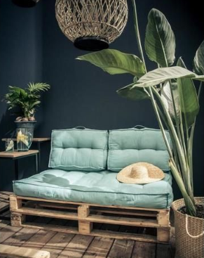 petit canapé avec matelas palette et plante verte