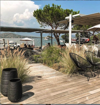 Of course, sur plage privée. Ce qui était parfait pour le mariage. C’était trop beau : les mariés sont arrivés par la mer en bateau et ont passés un gigantesque arche fleuri. La terrasse en teck est bordée de tiges de la pampa …. hum j’ai adoré !